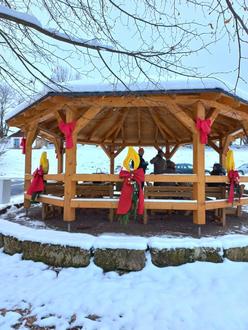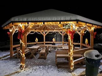 Der Pavillon wurde mit einer Lichterkette versehen und große Adventskerzen aus Holz, hübsch dekoriert, im Innenraum aufgestellt.