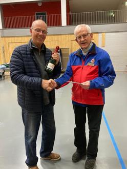 Peter Freund (li) wird für die 75. Spende von Bereitschaftsleiter Heinrich Nitz geehrt.