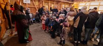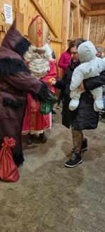 Nach getaner "Arbeit" stärkte man sich bei Hausmacher Bratwurst vom Holzkohle-Grill, Kinderpunsch und Glühwein. Pfarrer Michael Zehender läutete die Weihnachtszeit mit einem kleinen Gottesdienst ein. Nach Einbruch der Dunkelheit kam der Nikolaus mit Knecht Ruprecht zu Besuch und beschenkte die Kinder mit Süßigkeiten, Obst und Nüssen.