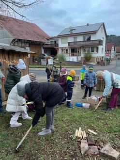 Kaum erwarten können es die Kids natürlich, bis die Farbenpracht in ein paar Monaten den Dorfplatz schmückt.
