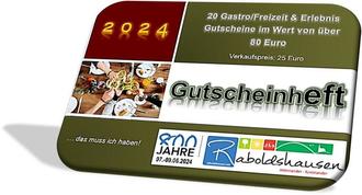 Anlässlich unseres Festjahres 2024 gibt es ein Gutscheinheft mit verschiedensten Gastro/Freizeit & Erlebnis Gutscheinen zu unseren örtlichen Veranstaltungen.
