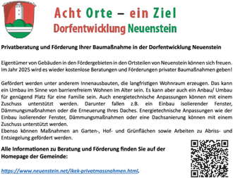 Eigentümer von Gebäuden in den Fördergebieten in den Ortsteilen von Neuenstein können sich freuen.