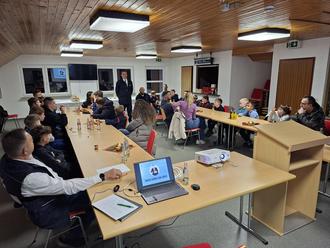 Im Anschluss an die Begrüßung informierte Timo Peter über die insgesamt 39 Veranstaltungen der Jugendfeuerwehr und der Kleinlöschgruppe im abgelaufenen Jahr 2025