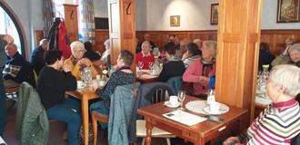 Der Seniorenbeirat Neuenstein hatte zur ersten Fahrt in 2023 eingeladen. Wie in jedem Jahr, war die 1. Fahrt zum „Adler-Modemarkt“ nach Haibach. Das Interesse war groß und schnell war der Bus ausgebucht. Jetzt konnte es losgehen. Nachdem alle Ortsteile angefahren waren, ging es auf direktem Weg nach Haibach. Nach der Begrüßung im Bus wurden wir zum Frühstück eingeladen und die Modenschau lief gleichzeitig. Alle ließen es sich gut schmecken und waren begeistert von den vielen schönen Teilen, die die Modells trugen. Nachdem sich alle gestärkt hatten und die Modenschau beendet war, konnte eingekauft werden. Es gab sehr viel zu sehen, aktuelle Mode und neue Mode. Das Angebot war groß. Jeder konnte nach Herzenslust stöbern und kaufen. Es gab 25 % Rabatt für Buskunden. Das hat sich gelohnt. Nach dem Einkauf war Mittagessen. Es gab Krautroulade mit Kartoffelpüree. Was sehr gut geschmeckt hat. Nachdem alle sich gestärkt hatten, ging es durch das Spessarttal weiter nach Marktheidenfeld am Main. Dort ging es vom Busparkplatz am Main entlang in die Stadt zum Franck – Haus. Museum im Franck – Haus. Das Franck – Haus, die leuchtend blaue Sehenswürdigkeit der Stadt Marktheidenfeld, ist heute Kulturzentrum und bietet zahlreiche Ausstellungen zeitgenössischer Bildkunst. Franz Valentin Franck 1702 – 77 ein reicher Weinhändler und Kaufmann erbaute dieses Haus 1745. Er erweiterte den Bau zur Straßenseite und zum Hof und stattete es mit einer imposanten Farbe aus. Die smaltblaue Farbe der Fassade wurde bei der Renovierung wieder hergestellt, die schon währen der Erbauungszeit als die teuerste Farbe galt und viel Aufmerksamkeit. Sehenswert ist der Festsaal mit seinen gewebten Wandbespannungen und Deckengemälden. Nach der Überlieferung soll Johann Georg Andreas Schulz 1735 – 1809 in diesem Haus die Sektherstellung in Deutschland erfunden haben.