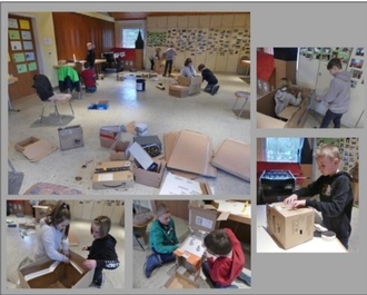 Unzählige große und kleine Kartons und Pappreste regten die Kinder an, damit die weltgrößte Murmelbahn zu bauen! An mehreren Stationen wurden schon ideenereich die ersten Teile konstruiert und diese Woche wollen wir versuchen, die Teile mittels Flaschenzügen miteinander zu verbinden. Ob das Klappt? Das wird spannend!