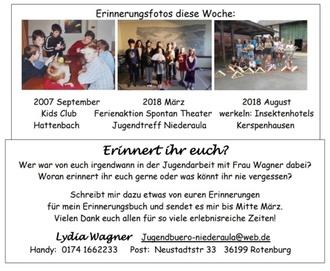 Immer noch wichtig,, neue Jugendarbeiter/innen zu gewinnen, damit Angebote für Kinder, Jugendliche und Familien spätestens zum Sommer hin weitergehen können! Sont wäre es ein herber Verlust für Niederaula, Kirchheim und Neuenstein!