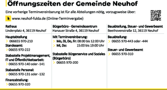 Öffnungszeiten Gemeinde Neuhof
