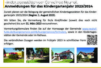 Anmeldungen für das Kindergartenjahr 2023/2024