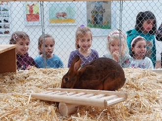 Die echten Kaninchen im Gehege, die sich die Kinder anschauen durften, waren natürlich besonders interessant. Zum Ausklang des Tages gab es noch ein Bastelangebot, alle Kinder durften sich ihre eigenen Hasenohren ausschneiden und gestalten.