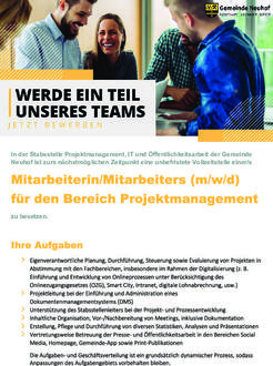 Stellenausschreibung - Mitarbeiterin/Mitarbeiters (m/w/d) für den Bereich Projektmanagement