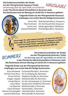 Hauswurz: Dienstag, 31.03.2026, um 20.00 Uhr im Pfarrhaus.