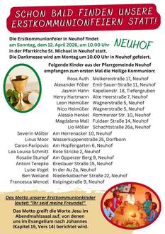 Neuhof: Mittwoch, 01.04.2026, um 20.00 Uhr im Pfarrzentrum.