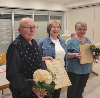 Der Höhepunkt dieses Abends war die Ernennung zu Ehrenmitgliedern von Maria Lipus und Lothar Möller. Die Urkunden und ein Blumensträuße überreichte die Vorsitzende Cäcilia Wehner. In ihrer Laudatio würdigte sie die neuen Ehrenmitglieder mit Adjektiven, die auf Beide zutreffen: - musikalisch - eifrig - ausdauernd - engagiert - verlässlich - mitdenkend - aufgeschlossen - verantwortungsvoll - erfahren und einsatzbereit.