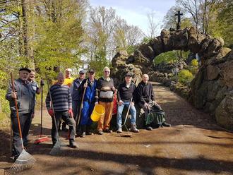 Für die Veranstaltungen im Marien-Monat Mai ist es notwendig, die Grotte am Opperzer Berg von den Überbleibseln der Wintermonate zu reinigen. Die Männergruppe des Grottenteams nutzte die Gelegenheit des beginnenden Frühlingswetters und sammelte viel Laub und auch im Grottenboden aufgegangene Gewächse ein. Die Frauengruppe des Grottenteams hatte bereits Tage zuvor mit frischem Blumenschmuck den Wintereindruck vertrieben. Zahlreiche Helfer haben sich im „Freundeskreis Mariengrotte Neuhof“ zur Erhaltung dieses in den 1920er Jahren errichteten und in den Jahren 2018 bis 2020 sanierten historisch & kulturellen Erbes zusammengefunden, um es zu pflegen und auch für zukünftige Generationen zu erhalten. Erst kürzlich wurde die Statue der Muttergottes restauriert und strahlt jetzt in frischen Farben über der Grotte.