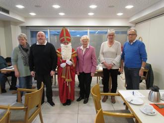 Anschließend klopfte der stilecht gekleidete Nikolaus an die Tür und verteilte nach einführenden Worten kleine selbstgebackene Stollen an die Anwesenden. Die Vorsitzende Kerstin Staubach verbarg sich hinter der Gestalt des Nikolaus.