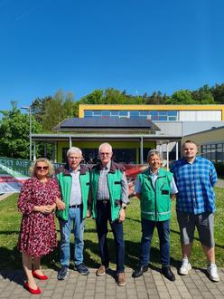 Schulleiterin Frau Schneider, Herr Brink, Herr Ostrowski und Herr Auth von der Verkehrswacht sowie Herr Banin (v. links nach rechts)