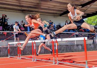 Dem stand Lotte Schwarz kaum nach. Die überlegene Siegerin über 80m Hürden der W14 blieb mit 12,94 Sekunden nicht nur erstmals unter 13 Sekunden sondern unterbot erneut die Qualifikationsnorm für die süddeutschen Meisterschaften. Wenig später gewann Lotte auch noch die Silbermedaille im 100m-Sprint der W14 mit 13,26 Sekunden.