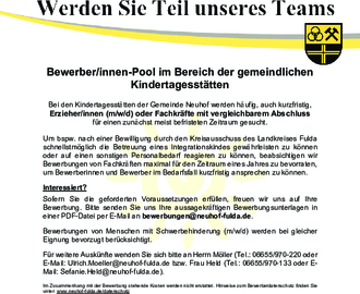 Stellenausschreibung Erzieherinnen Bewerberpool