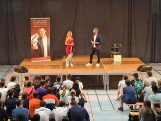 Der Zauberer Claudio Gnann besuchte am 29.6.2023 die Johannes-Kepler-Schule und verzauberte Schüler wie Lehrer