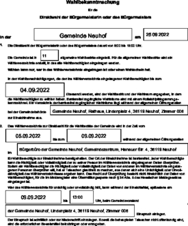 Wahlbekanntmachung für die Direktwahl der Bürgermeisterin oder des Bürgermeisters