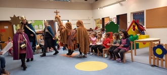 Es gehört seit einigen Jahren zur Tradition, dass zum Dreikönigstag die Sternsinger der Kirchengemeinde St. Michael den Kindergarten St. Barbara besuchen.