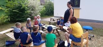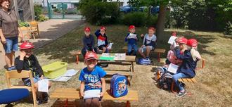 An einem sonnigen Vormittag im Juli war es dann soweit, zwei Kindergartenmütter hatten sich gut vorbereitet und führten die Vorschulkids durch den theoretischen Teil des „Führerscheins".