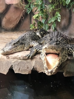 Ganz große Augen machten die Kinder, als sie die beiden echten Krokodile entdeckten, die im Tümpelgarten heimisch sind. Das faszinierte die Kinder natürlich ganz besonders und war der Höhepunkt der Führung.