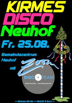 Die Kirmestanzgruppe Neuhof e.V. lädt am Freitag, den 25. August 2023 ab 20 Uhr herzlich zur Kirmesdisco im Gemeindezentrum Neuhof ein.