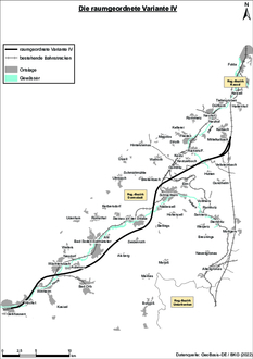 Das ROV hat keine raumverträglichere Variante ergeben als die Antragsvariante IV, mit denen das Vorhabenziel zu erreichen wäre. Unter überörtlichen Gesichtspunkten erzeugt die beantragte Variante IV auch geringere raumbedeutsame Auswirkungen als die im Rahmen des Verfahrens von DB Netz vorgelegte Alternative VII. Die Variante IV ist in den Gesamtergebnissen zur Raumverträglichkeitsuntersuchung (RVU) und einer Umweltverträglichkeitsuntersuchung (UVU) als günstiger anzusehen. Unter Berücksichtigung verkehrlicher und volkswirtschaftlicher Kriterien ist sie als die bessere Linienführung einzustufen. Die Variante VII kann im Belang Grundwasser / Trinkwasserversorgung nicht mit den Erfordernissen der Raumordnung in Übereinstimmung gebracht werden. Sie stellt keine ernsthaft in Betracht kommende Tassenalternative dar. Daneben liegen keine aus den Antragsunterlagen ableitbaren sowie keine von Dritten vorgeschlagenen, raumverträglicheren Trassenalternativen oder Trassenkombinationen vor.