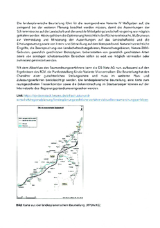 Die landesplanerische Beurteilung führt für die raumgeordnete Variante IV Maßgaben auf, die zwingend bei der weiteren Planung beachtet werden müssen, damit die Auswirkungen der Schienenstrecke auf die Landschaft und die sensible Mittelgebirgslandschaft so gering wie möglich gehalten werden. Hierzu gehören die Optimierung hinsichtlich des Flächenverbrauchs, Maßnahmen zur Vermeidung und Minderung der Auswirkungen auf das Landschaftsbild und die Erholungsnutzung sowie von Trenn- und Störwirkung auf den Biotopverbund. Naturschutzrechtliche Eingriffe, die Beanspruchung von Landschaftsschutzgebieten, Naturschutzgebieten, Natura 2000-Gebieten, gesetzlich geschützten Biotoptypen, Lebensstätten von gesetzlich geschützten Arten sowie von sonstigen schützenswerten Bereichen sollen so weit wie möglich vermieden oder zumindest gemindert werden.