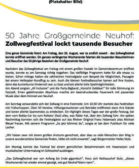 Nächster Artikel: 50 Jahre Großgemeinde Neuhof