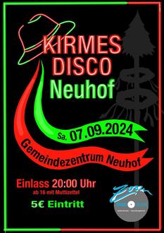 herzlich zur Kirmesdisco im Gemeindezentrum Neuhof ein.
