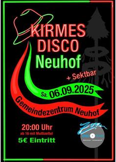 herzlich zur Kirmesdisco im Gemeindezentrum Neuhof ein.
