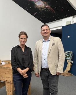 Silvia Brünnel, Geschäftsführerin Kinder-Akademie Fulda, und Christian Mielke, Mitglied der Geschäftsführung, Fronius Deutschland GmbH freuen sich über die Zusammenarbeit.
