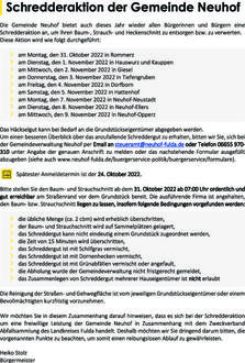 Vorheriger Artikel: Schredderaktion der Gemeinde Neuhof
