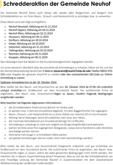 Die Gemeinde Neuhof bietet auch dieses Jahr wieder allen Bürgerinnen und Bürgern eine