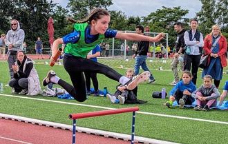 Auf dem Foto zu sehen ist Carla Heil, auch sie wird Samstag für Team Neuhof in der Kinderleichtathletik auf Punktejagd gehen.