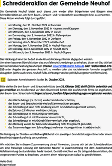 Schredderaktion der Gemeinde Neuhof