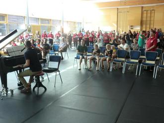 Der Höhepunkt unserer Präsentation war das „Rudelsingen“ zusammen mit dem gesamten Publikum im Bürgerzentrum. Alle Mitglieder der Chorvereinigung verteilten sich im Raum und sangen zusammen mit den Anwesenden einen Kanon sowie verschiedene Schlager. Angeleitet wurden wir von unserem Dirigenten Michael Junk, der gekonnt alle Teilnehmer zum Mitsingen animierte. Die Stimmung war gut und es hat allen viel Spaß gemacht.