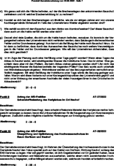 | d) | Wo genau soll sich die Fläche befinden, auf der die Brecheranlagen den ankommenden Bauschutt zerkleinern und mit welcher Staubentwicklung ist zu rechnen? |