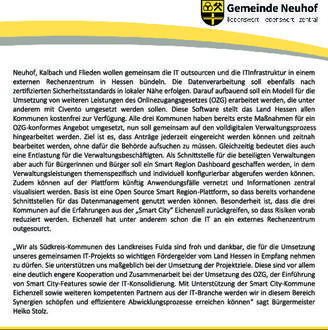 Wochenzeitung mit den öffentlichen Bekanntmachungen der Gemeinde Neuhof