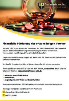 Nächster Artikel: Vereinsversammlung aller Vereinsvorstände aus der Gemeinde Neuhof