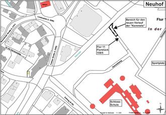 Betroffen ist hiervon u.a. das Wegegrundstück in der Gemarkung Neuhof, Flur 11, Flurstück 158/5, der Bereich der Verlegung ist dem anliegenden Plan zu entnehmen.