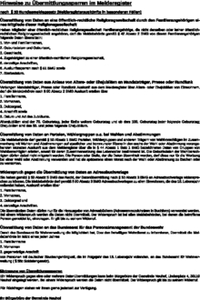 Hinweise zu Übermittlungssperren im Melderegister