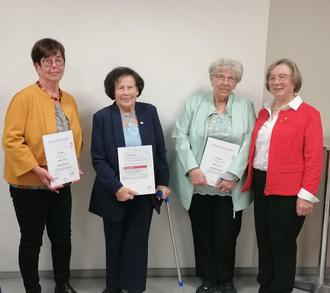 Im Anschluss an den besinnlichen Teil wurden drei Sängerinnen für ihre langjährige aktive Tätigkeit in unserem Chor geehrt. Für jeweils 65 Jahre aktives Singen wurden Lydia Lauer und Hiltrud Kreß aus Neuhof, für 50 Jahre Hiltrud Kreß aus Dorfborn vom Deutschen Chorverband geehrt. Alle drei Sängerinnen bringen sich seit sehr vielen Jahren im Chor ein und nehmen bis heute regelmäßig an der Probenarbeit und an Auftritten teil. Hierfür dankte die Vorsitzende Cäcilia Wehner ganz besonders.