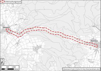 Die vorgesehenen Vorarbeiten erstrecken sich auf alle Grundstücke, die sich auf der beigefügten Übersichtskarte innerhalb der dargestellten Umgrenzungen befinden. Die betreffenden Grundstücke liegen in der Gemeinde Neuhof in den Gemarkungen Rommerz, Hauswurz und Kauppen eingefriedete Grundstücke werden nur nach vorheriger Kontaktaufnahme mit den Grundstücksberechtigten betreten.