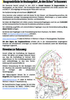 Baugrundstücke im Neubaugebiet "An den Eichen" in Hauswurz