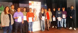 Schulleiterin Karin Schneider (Mitte) mit den glücklichen Preisträgern und den verantwortlichen Lehrkräften