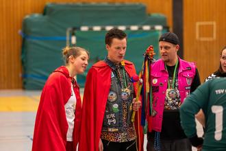 Unter besonderen Vorzeichen ging die MSG Neuhof/Eichenzell am vergangenen Samstag in ihr Heimspiel gegen den VfL Wanfried III. Nachdem die Gäste eine Woche zuvor aufgrund von Spielermangel ihr Spiel absagen mussten, erklärten sie sich sportlich bereit, das Heimspielrecht zu tauschen. So konnte die Partie kurzfristig in Neuhof ausgetragen werden - ein Umstand, den die MSG dankend annahm. Für einen zusätzlichen emotionalen Rahmen sorgte das amtierende Lumpen-Prinzenpaar Antonia und Kilian Kulla. Lumpazi Antonia eröffnete feierlich die Partie mit dem Anwurf nach alter TV-Neuhof-Fastnachtstradition.