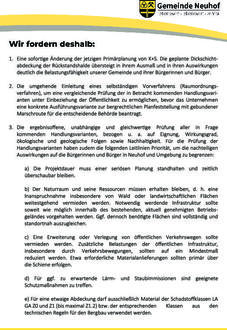 Dickschichtabdeckung der Rückstandshalde: Politische Stellungnahme der Gemeinde Neuhof